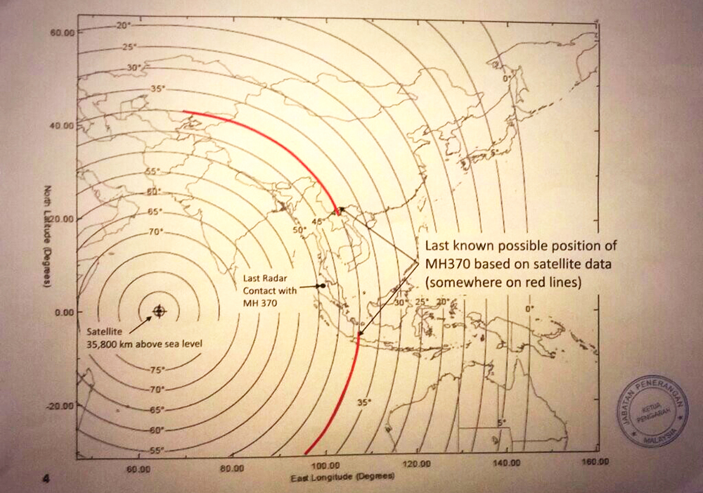 Now, we have been told that it was a satellite that gave us the possible flight path of flight 370.  The problem with that story is that, from the location we are given for the satellite, it would have a direct line of sight to the plane no matter which direction it flew.  So, if the satellite had directional finding abilities (something highly unlikely if it was just recording engine data), then it should have been able to track the exact path of the plane.  However, if – like Oboe and Gee-H – whatever means was used to track flight 370 was actually terrestrially based (i.e. on the surface of the planet), then it is very likely they would be limited to the arced path we see in the map the media is showing us.  The question then becomes, where would such a land-based detection system be located, and why would it be there?